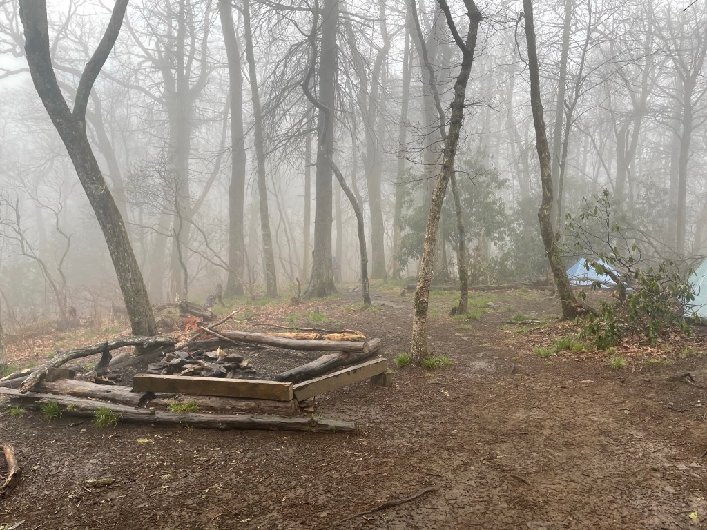 The hike from Blue Mountain to Tray Mountain was uneventful. The mountains were socked in with fog, you could hardly see more than 25 or 30 yards in any direction. We looked forward to reaching camp and cooking a hot meal.
