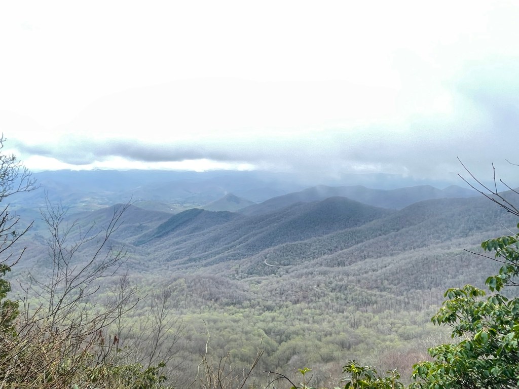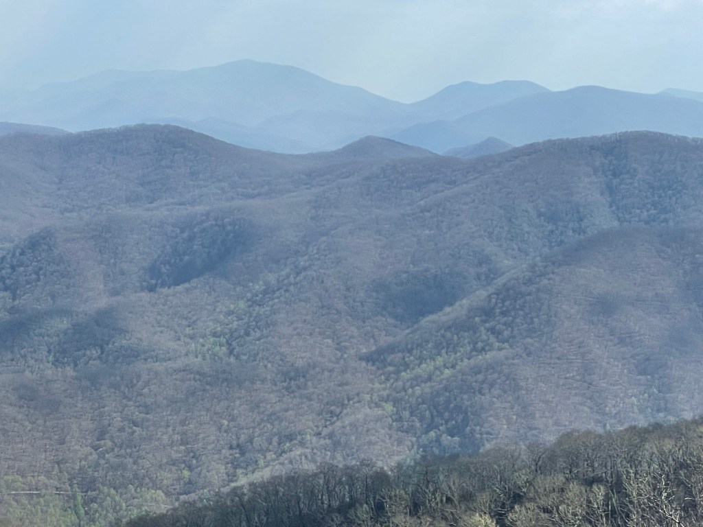 I reached the one hundred mile mark when I arrived at the Albert Mountain fire tower. It was a milestone on the trail to reach the one hundred mile mark. All I have to do is walk a hundred miles twenty-one more times and I’ll be done. I climbed the tower and looked at the raw beauty of the mountains. It was hazy, and there was a slight smell of woodsmoke wafting in the air.