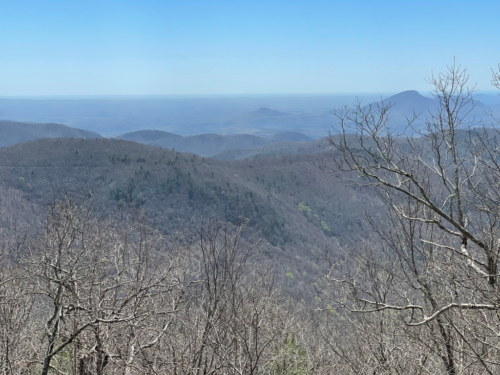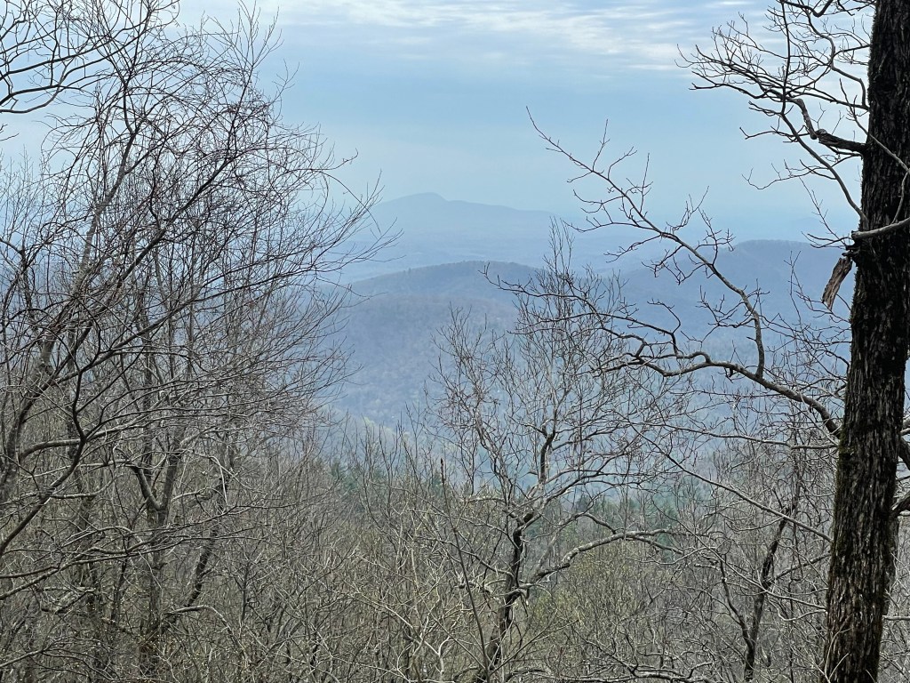 Spring has yet to reach the tops of the mountains.Finally we had a little sunshine. The view from Wolf Laurel Top