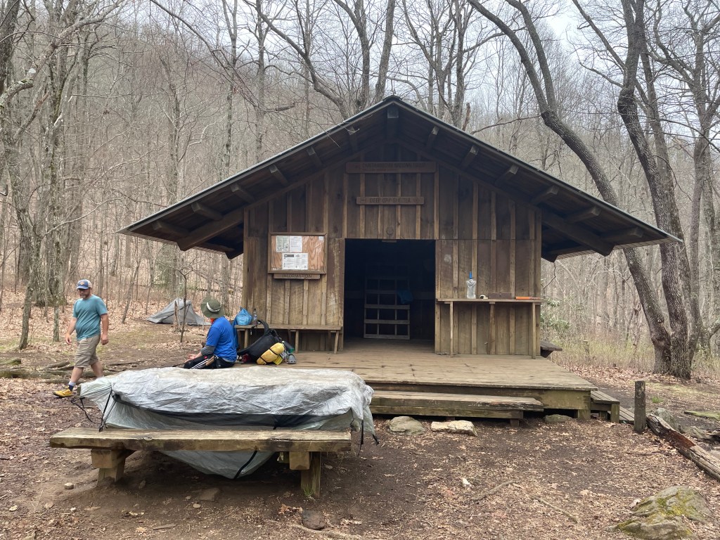My legs were weary from the long hike the previous day. My feet were rock bruised, swollen, and sore. I was glad to see the shelter at Deep Gap looming ahead in the fog. We looked forward to taking off our packs and sitting down.